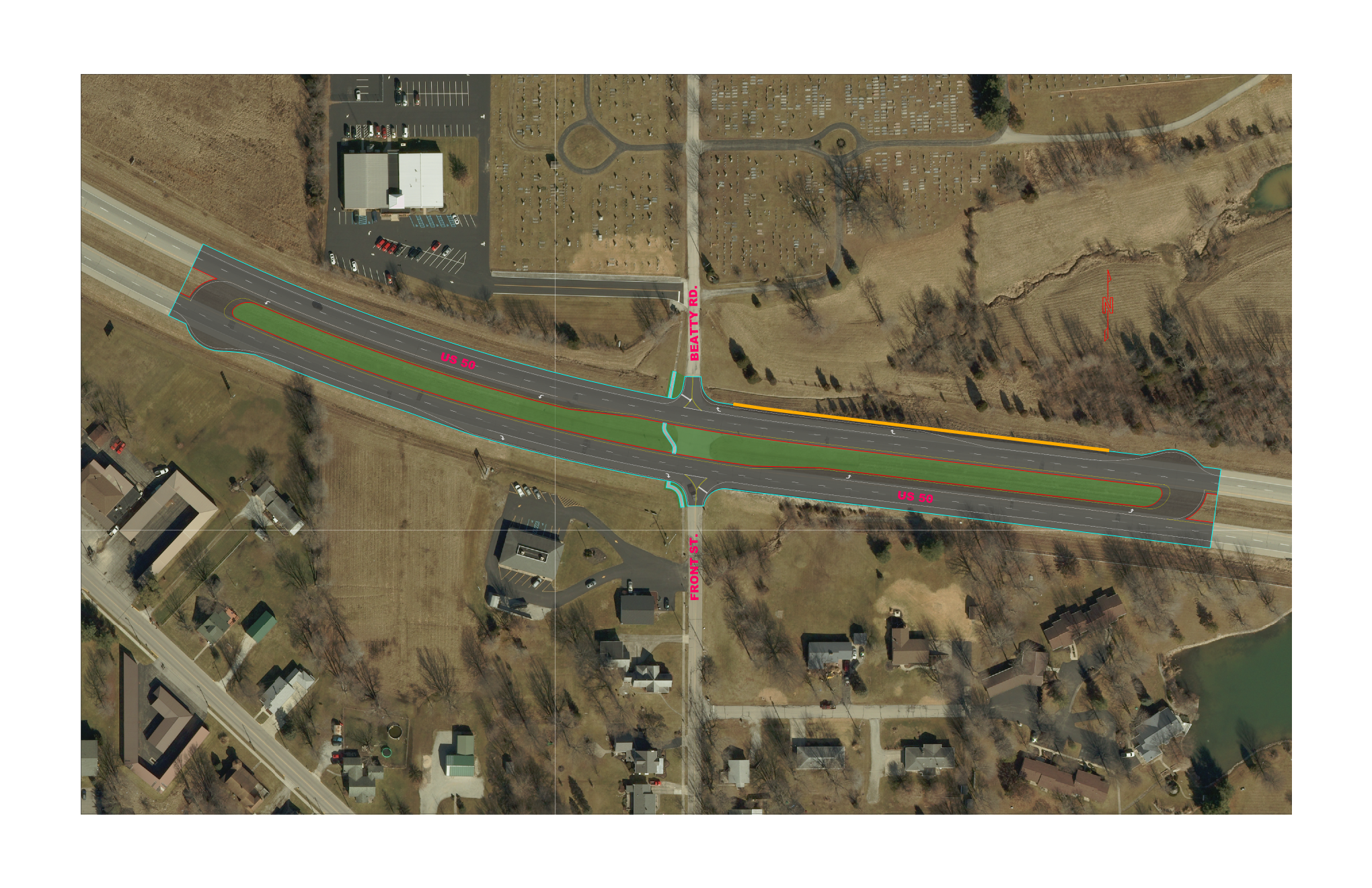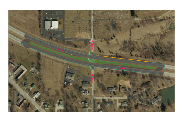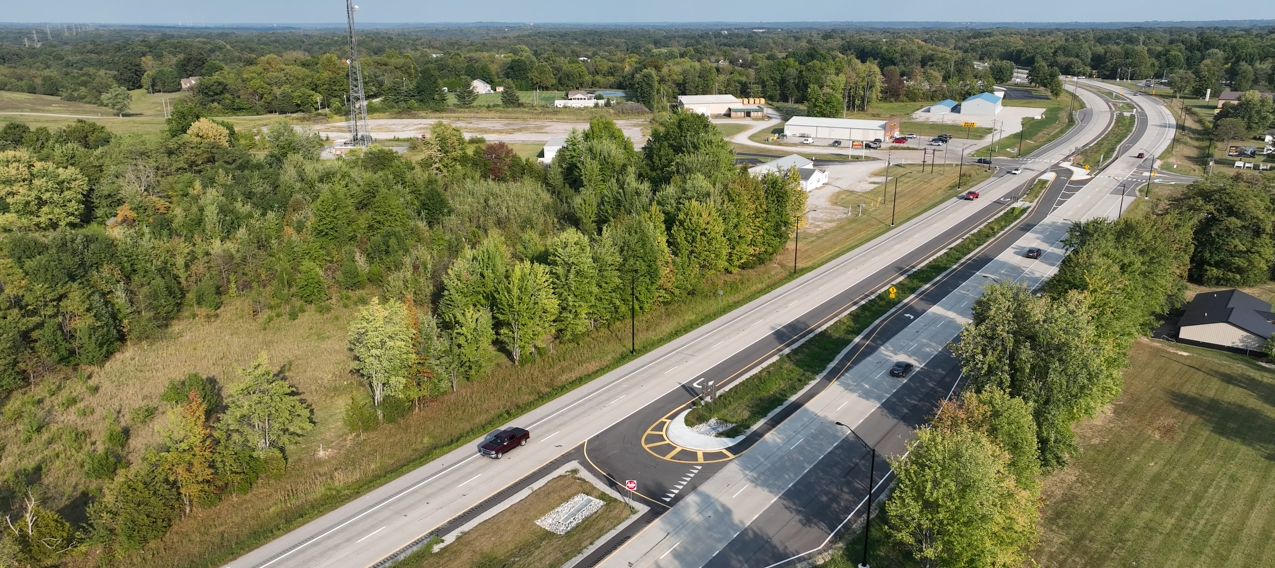 The US 50 Reduced-Conflict Intersection (RCI) Improvement project involved the construction of two consecutive Reduced-Conflict Intersections in the town of Dillsboro that increased safety of these intersections by reducing the number of conflict points and reconfiguring the intersection to reduce the number of crossing conflicts. The need for this type of improvement was driven by crash history.